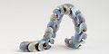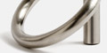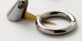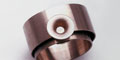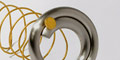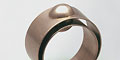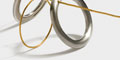 Zwei Arbeiten können uns erste Schritte aus der Introversion heraus anschaulich machen. Im einen Fall kann vielleicht noch darüber Uneinigkeit bestehen, ob wir es hier noch mit einer "essentiellen Form" zu tun haben, es ist ein schlichter Edelstahlring mit zwei beweglichen Stäben. Die minimale Differenz – zwei statt einem Stab – ergibt eine maximale Variation mit der Tendenz ins Unendliche (Abb. ---). Im anderen Fall fungiert der Ring selbst als stählernes Behältnis, durch das ein feiner Golddraht geschützt wird. Aus seinem Versteck fühlt der feine Draht in Form einer Geraden in zwei Richtungen in den Raum hinaus. Für den Betrachter bieten beide Beispiele formale, auch Material bezogene Anknüpfungspunkte, um in der sinnlichen Wahrnehmung und je nach persönlichem Erfahrungshorizont das emotionale Potential der Form für sich auszuloten."